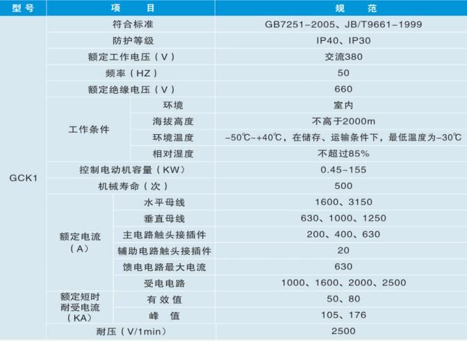 產(chǎn)品介紹:1、概述GCK型低壓成套開關(guān)設(shè)備適用于發(fā)電廠、石油、化工、紡織、高層建筑等行業(yè)的配電系統(tǒng)、變電所。在大型發(fā)電廠、石化系統(tǒng)等自動化程度高,要求與計算機(jī)接口的場所,作為三相交流、頻率為50(60)HZ、額定工作電壓為380V(400)、(660), 額定電流為4000A及以下的……